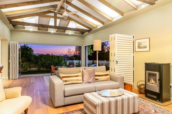 The long rectangle spacious open plan living areas are so inviting and simple with light flooded throughout and exquisite finishes that include an Italian Pellet Burner Fireplace that feeds itself that is computerized. The blinds are also automated In addition to the 3 bedrooms is a very functional study that is fully fitted with solid oak desks and bookshelves..