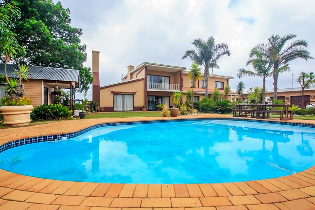 The main house consists of a large open-plan, L-shaped lounge and dining room. Sliding doors lead from the lounge to the tropical pool area. The kitchen has beautiful solid wood. There is a separate entertainment room with built-in braai, and a guest toilet off the extra-large entrance hall.