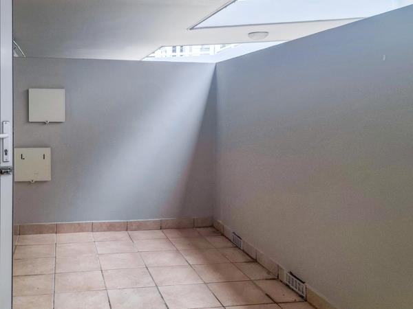 Enter through an enclosed private patio that extends your living space and leads into an open-plan kitchen and lounge. The kitchen is the star of the unit: modern and spacious with quality finishes. The bedroom offers ample built-in cupboards, and the bathroom features a modern vanity and a shower.