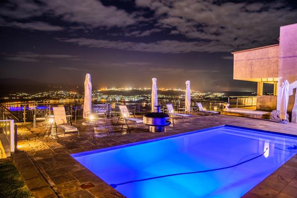 Villa Castollini, an exceptional boutique hotel perched atop the Western Head of Knysna, offers a luxurious and exclusive retreat on the prestigious Garden Route. This iconic grand villa, covering 20.55 hectares, is renowned for its breathtaking views of the Knysna Lagoon, Thesens, Leisure Isle, the Majestic Knysna estuary, the Outeniqua mountains, and the Indian Ocean.