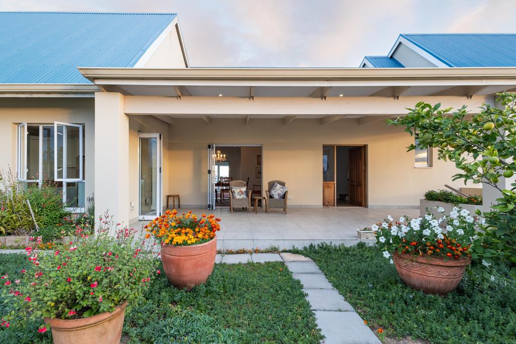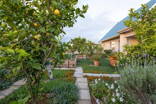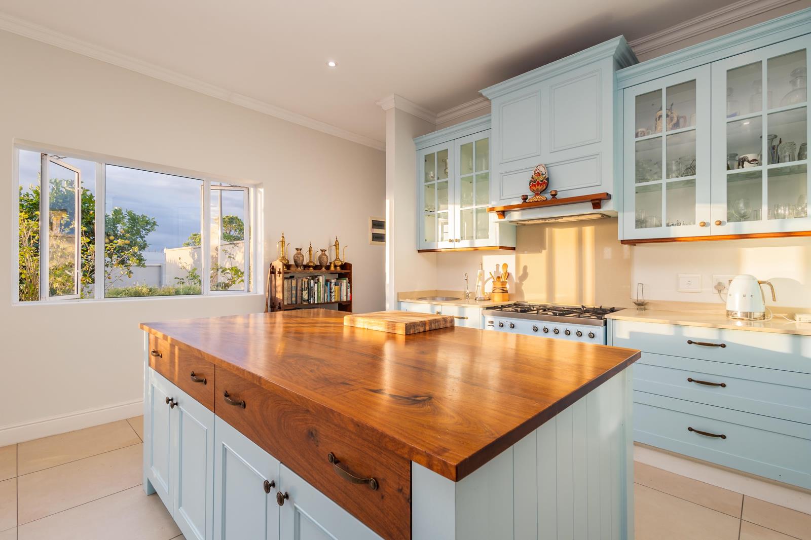 Beyond its prime location, the home offers exceptional curb appeal. A fully fenced entrance with an electronic gate leads into a charming lemon and lavender courtyard, setting the tone for the elegance within. At the heart of the home lies a spacious, beautifully designed kitchen, flowing seamlessly into open-plan living and dining areas. Double doors extend this space onto the courtyard, where distant views of the Outeniqua Mountains complete the picture.