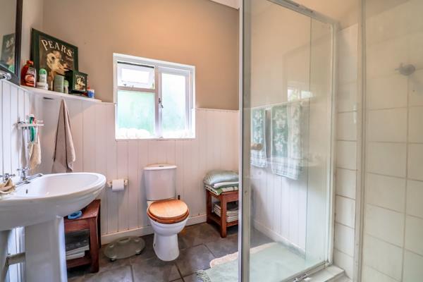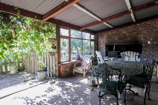 A spacious and character-filled 4-bedroom, 2-bathroom farmhouse with a guest loo, a large north-facing lounge and dining area, and a modernised farm kitchen complete with a wood-burning stove, walk-in pantry, and laundry room. The undercover stoep, with its built-in braai and cast-iron stove, sets the perfect stage for country gatherings. The home retains its authentic farmhouse feel a timeless blend of comfort and history.