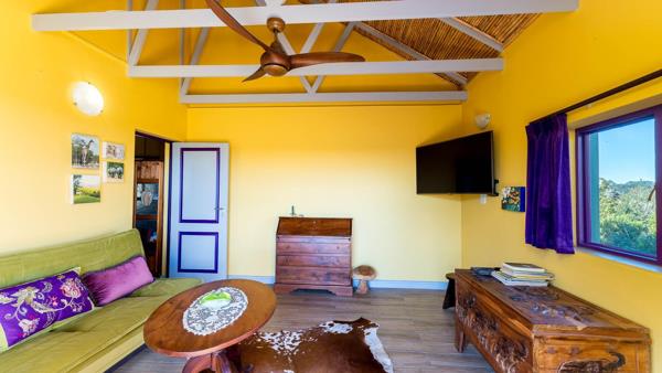 A short distance from the cottage you will find a lovely lapa area with built in braai. The garden has been levelled and would be perfect to erect a larger home also with stunning views over the entire property.