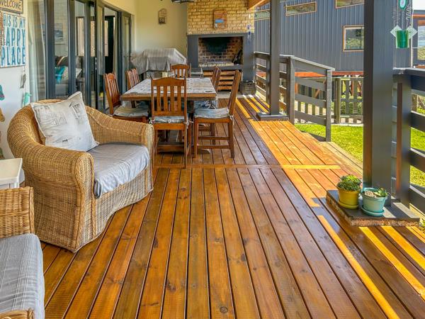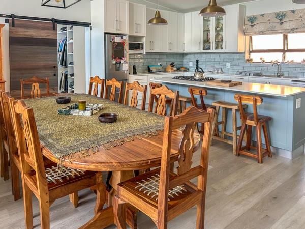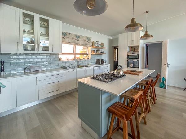Situated on the hillside of this superb suburb where buck abound, is this almost brand new north-facing dwelling. The open-plan living areas house the lounge, dining room and super kitchen, spilling onto a lovely braai patio with magnificent views of the Knysna Lagoon. The well-designed open-plan kitchen with its lovely finishes has a 5-plate gas stove, electric oven and a separate laundry room.