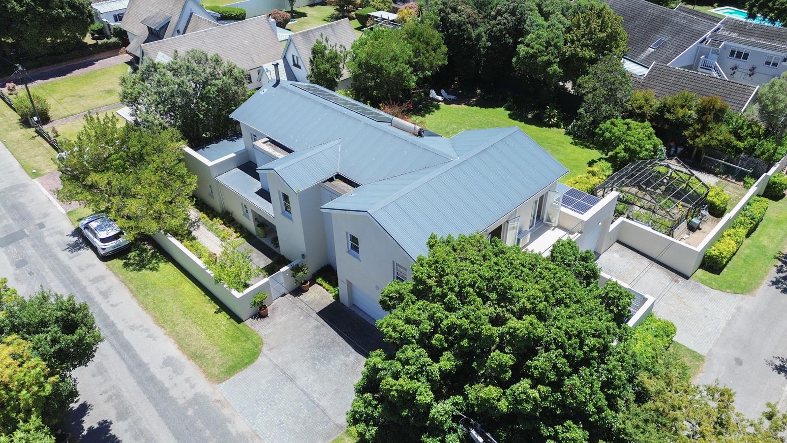 The home has been thoughtfully designed to enjoy both indoor comfort and outdoor living. High ceilings throughout enhance the sense of openness, while the seamless connection from the living areas to a large covered patio creates an inviting space for year-round dining and lounging. The patio overlooks a deep, established lawn framed by mature trees, offering privacy, protection from prevailing winds and all-day sunshine.