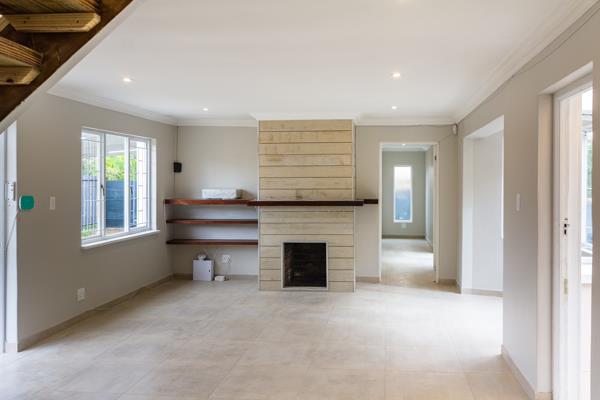On the ground floor, youll find a comfortable bedroom with en-suite bathroom, a modern kitchen, and a welcoming lounge with a cozy fireplace that opens onto a charming patio with a built-in braai. The outdoor area includes a tranquil garden with a pond/hot tub and a large, covered carport.
