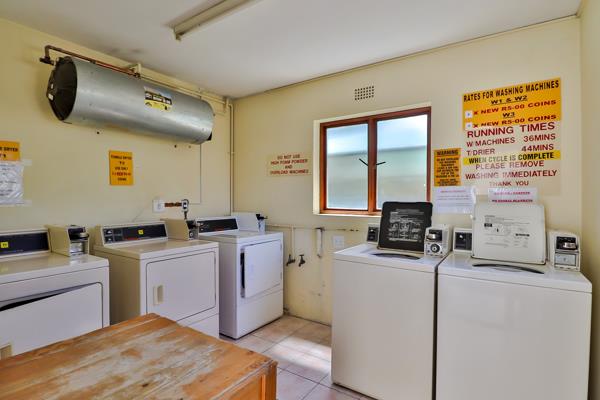 The complex is well managed and family-friendly, offering two communal swimming pools, a shared laundry, and tidy communal spaces. A pretty garden sets the tone as you head up the single flight of stairs to the gated front door.