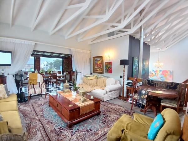 As you take the comfortable wooden stairs upstairs you have your large living area and guest toilet. The stoop is enclosed and offers you an additional room with a braai area. Towards the back, you have a comfortable-sized kitchen. The property is fully enclosed and pets are welcome. Double garage with shaded carport for additional parking. There is enough space on the property for your boat as well. It is a must-visit, to appreciate this unique home. Building plan approved for a fourth bedroom.