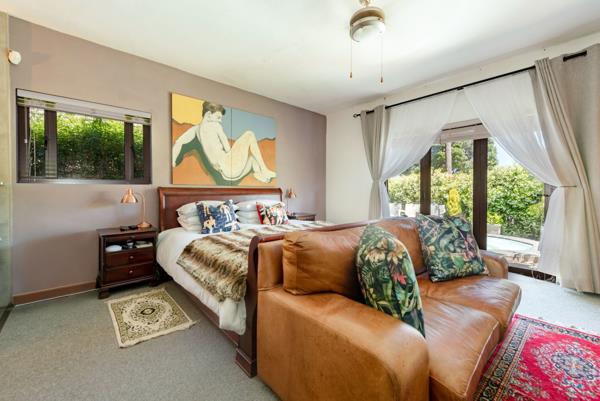 The heart of the home is upstairs, where a spacious open-plan kitchen, dining room, lounge, and enclosed patio create a perfect space for entertaining friends and family, or serving as a breakfast and lounge area for guesthouse guests.