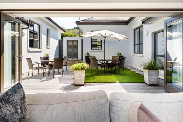 Thoughtful extras enhance everyday living: a converted golf-cart garage now serves as a gym or hobby room with a high-amp power outlet a secure outdoor storeroom on the deck keeps cushions and chairs neatly stowed and a large storage area under the stairs adds further utility. Underfloor heating runs through all bedrooms and living areas, while a double geyser system serves the four en-suite bedrooms and an on-demand gas heater supplies the kitchen, scullery and guest suite.