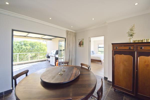 Step inside and discover a spacious designed interior, featuring two lounges, a dining room, and a cozy family TV room, perfect for unwinding. The modern kitchen with scullery, flows seamlessly into the open-plan living areas, creating an inviting atmosphere. Enjoy chilly evenings by the fireplace or host memorable gatherings with the enclosed built-in braai on your private patio. A dedicated study and practical domestic rooms add to the home''s functionality.