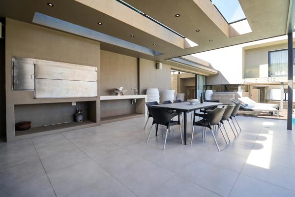 There is a 3 car garage as well as a laundry room and garbage room. The house is protected from load shedding with solar panels, an inverter and battery system. There is also a server room.