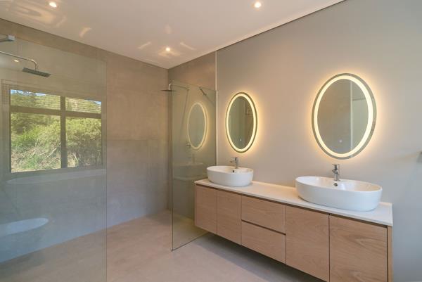 Expertly designed to harmonise with its natural surroundings, it offers an exceptional space for both living and entertaining. The house features three generously sized, ensuite bedrooms, all finished with high-end materials. Built on a single level, a staircase connects the garage to the main living area, creating a seamless flow.