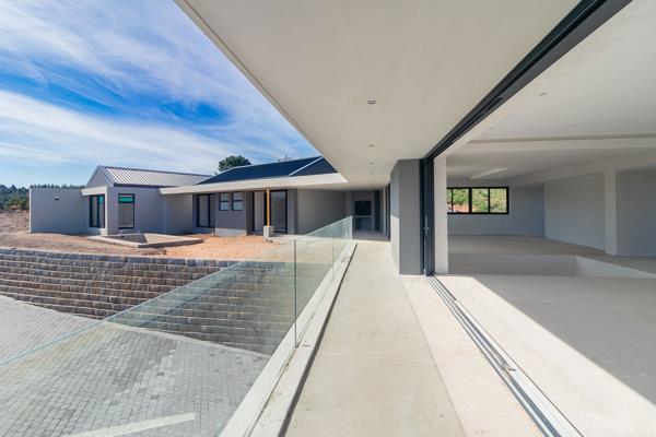 Contemporary New Build. This contemporary single-level residence, currently under construction, occupies a prime north-west facing stand, ensuring abundant natural light throughout the day. From this elevated position, youll enjoy uninterrupted views across the kloof to the majestic Outeniqua Mountains with spectacular sunsets that make this setting truly exceptional.