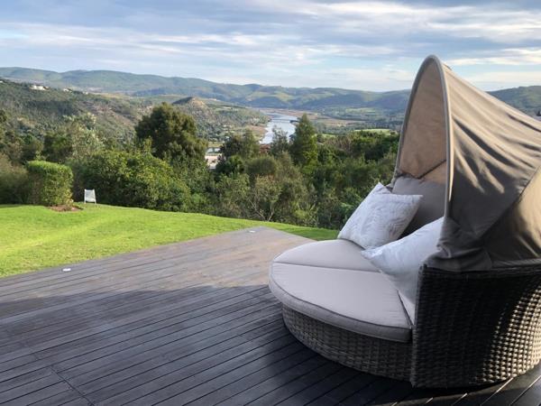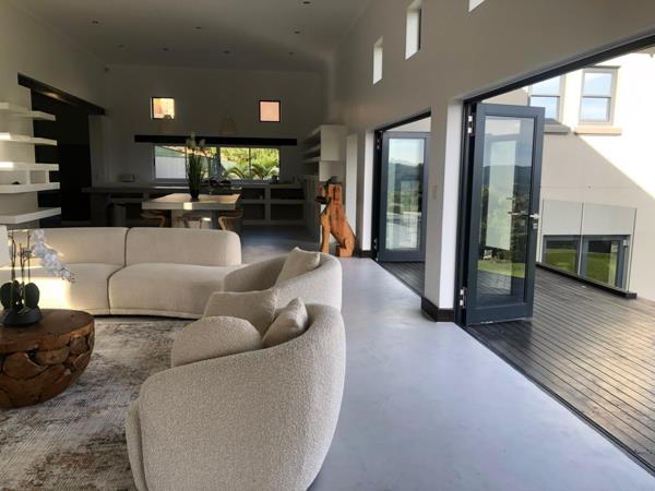 Designer home, beautifully presented on an elevated level plot overlooking the magnificent Knysna River and majestic mountains. Soak in the sunsets and start planning to create your forever home here.