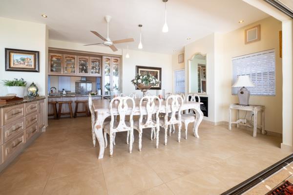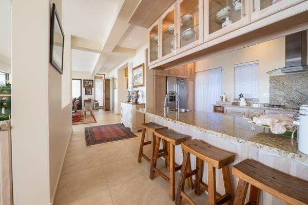 Enjoy open-plan living with large windows and sliding doors framing the Knysna Lagoon. The main lounge is spacious, open plan and have incredible views, while the second lounge offers a more private TV or reading space. The dining area links seamlessly to a fully fitted kitchen with gas and electric hobs, eye-level oven, and separate scullery. A dedicated study makes remote work or admin easy, and the double garage leads directly into the home for added security and convenience.