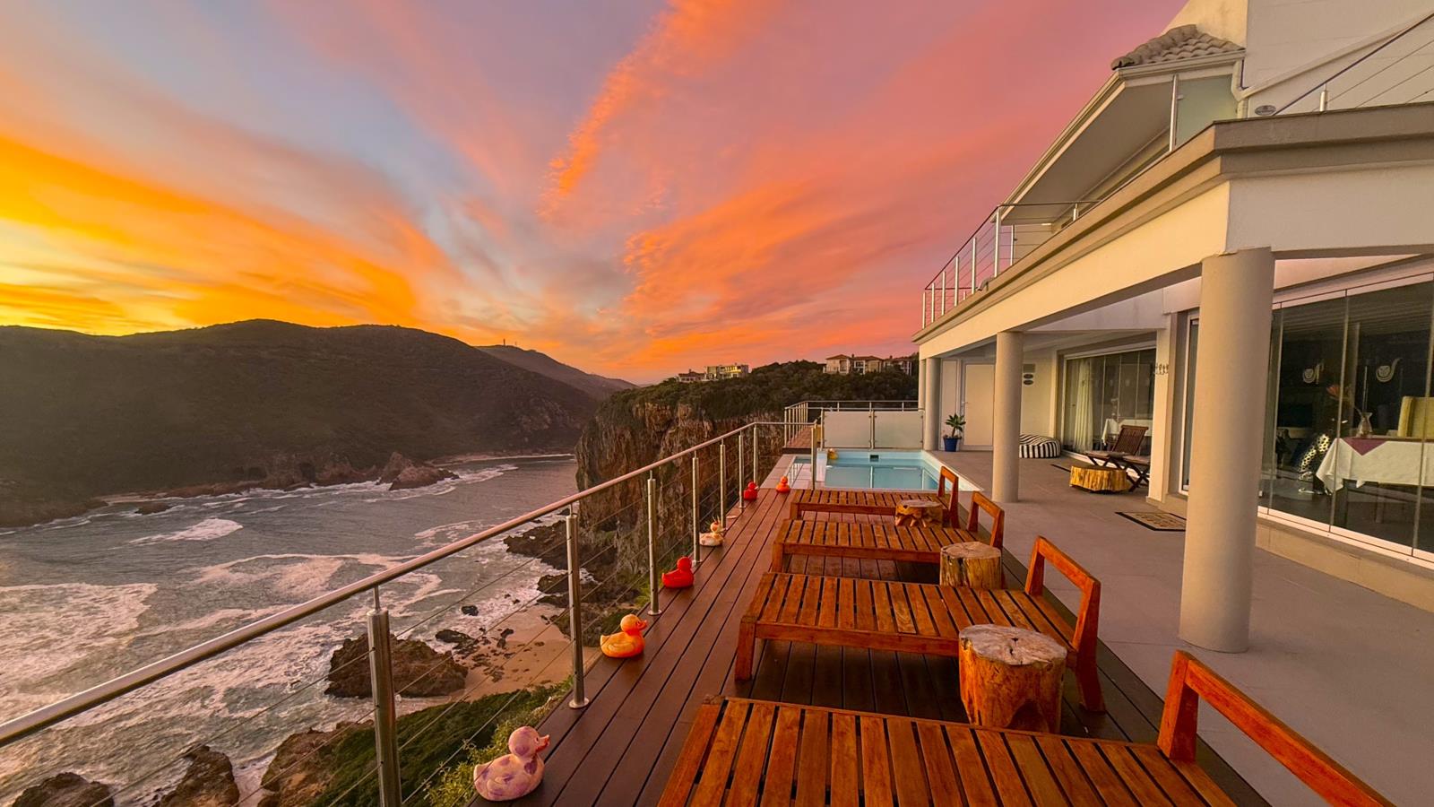 Discover an extraordinary opportunity to own a world-class coastal residence positioned on the dramatic edge of the iconic Knysna Heads. Here, uninterrupted ocean and lagoon views form a living masterpiece, an ever-changing canvas of natural beauty. This is a home where refined comfort meets contemporary elegance in one of South Africas most coveted locations.