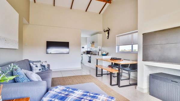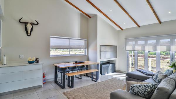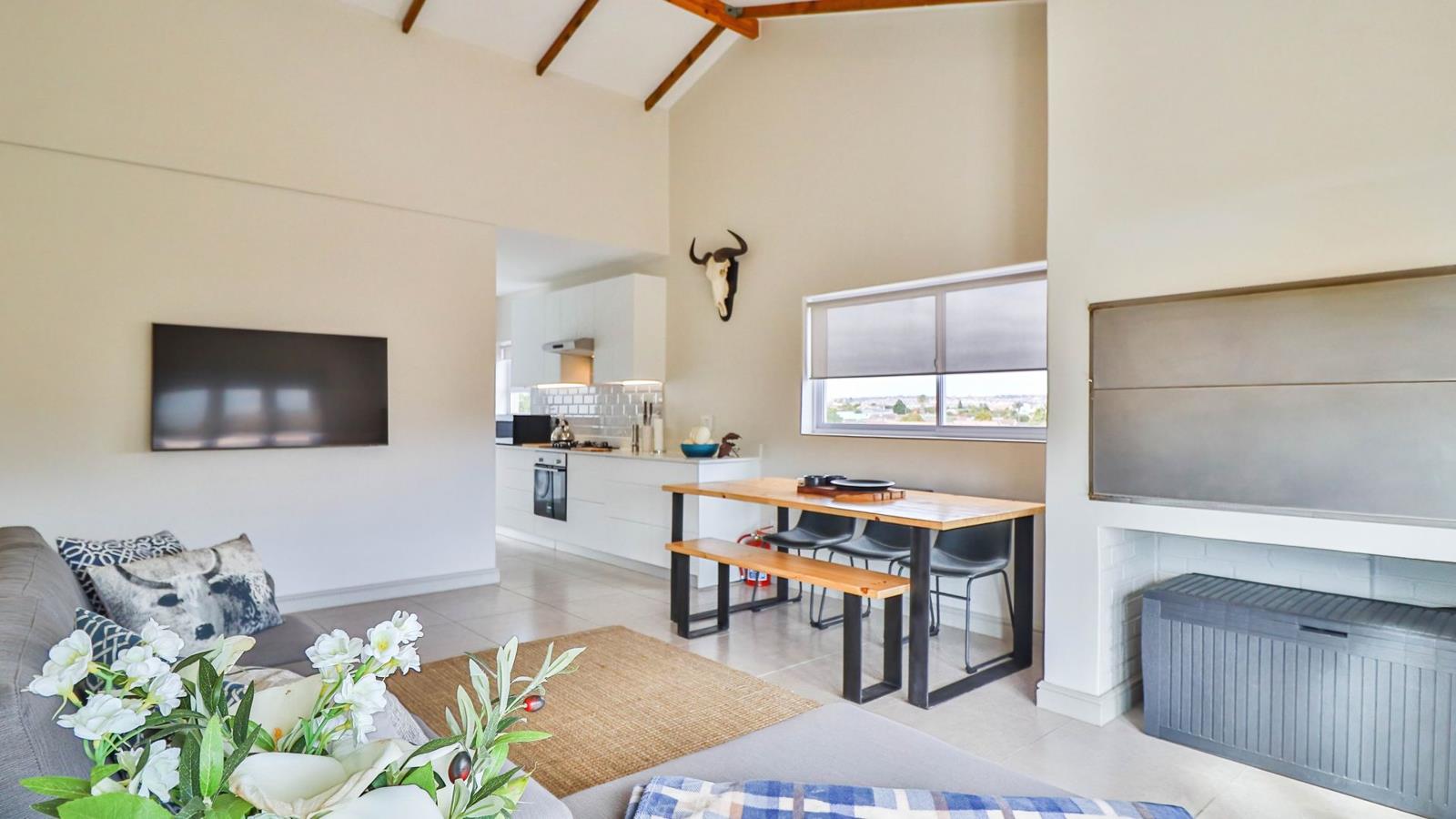 Open-plan living and dining area, with indoor braai, ideal for entertaining.