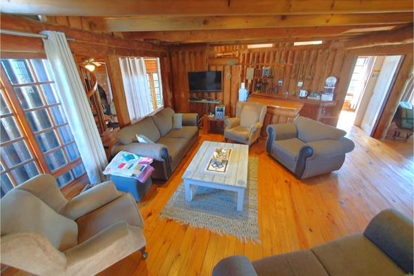 Welcome to a one-of-a-kind, hand-built log home a rare gem in Boggomsbaai, created byNature Log Homes, who completed only a handful of such exceptional dwellings. This home is a true celebration of natural materials and craftsmanship, where every beam, cupboard, and shelf has been lovingly shaped from solid wood.
