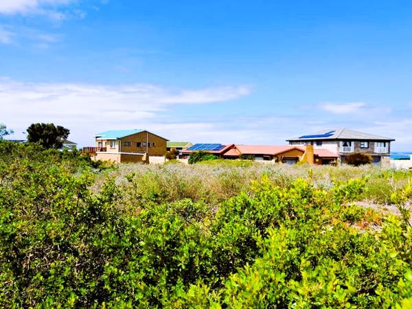 The property boasts the potential for elevated views, with glimpses of the distant ocean already visible from certain vantage points, promising breathtaking sunrises or sunsets from a future multi-story dwelling. Surrounded by well-maintained homes, some featuring modern amenities like solar panels, the plot offers a serene environment with the promise of a contemporary coastal lifestyle. The clear blue skies and natural surroundings underscore the tranquil appeal of this South African gem.