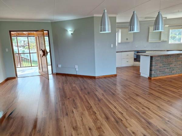 Practical features include an extra-large double garage with extensive built-in cupboards, perfect for storage. The garden extends to the adjacent greenbelt, inviting local wildlife such as bush buck to wander into your yard, providing a serene connection to nature.