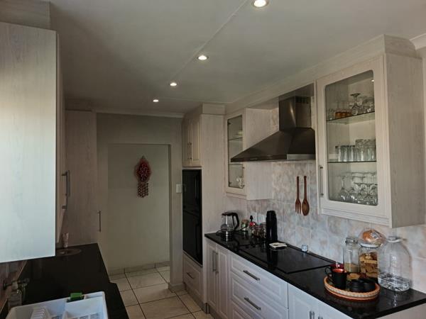 Drive into the double garage with a separate workshop/carport. In this building, you also find a braai room with a lounge flowing out onto the garden, which can easily be converted into a flat. The main house boasts an open plan kitchen, lounge /dining area, 2 bedrooms that share a bathroom and a third bedroom with the main suite, each with its own en-suite bathroom. More about this home: jo-jo tank, burglar bars and office space.