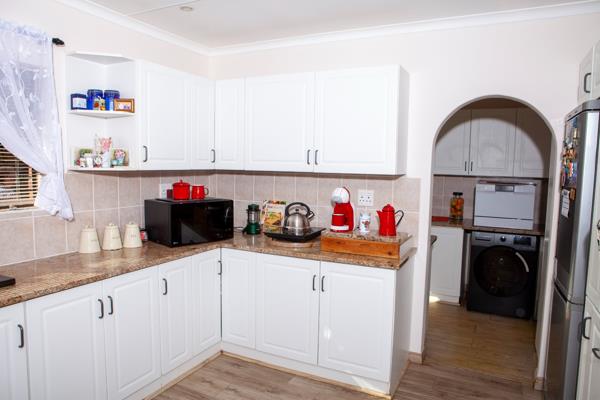Additional amenities include a Wendy house in the backyard, a new sun geyser with geyser wise and panel, two Sunsynk 5 kW batteries, a Sunsynk 5.32 inverter, and six 450-watt solar panels, making this home both energy-efficient and eco-friendly.