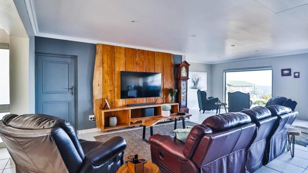 An extra huge bonus is that the main bedroom flows onto a deck with a sparkling swimming pool with a lovely open braai area. You also have stunning ocean views and the area is surrounded by glass bellistrates.