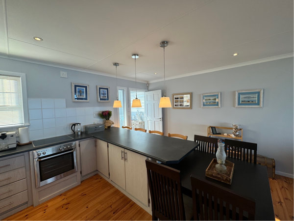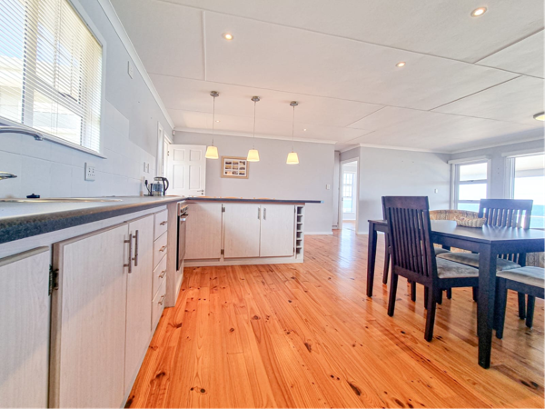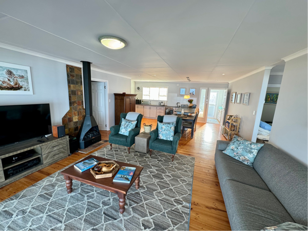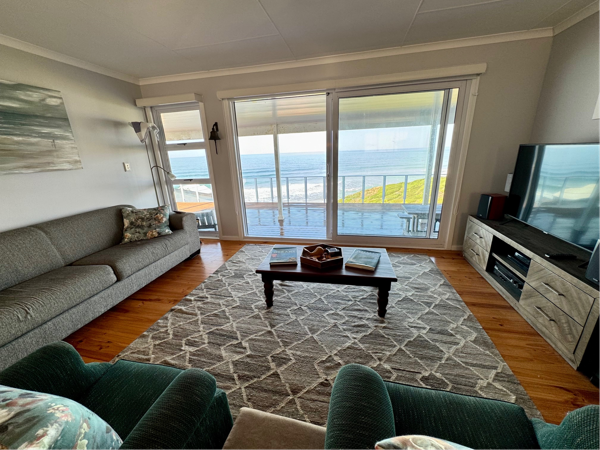 You seldom find a property with a beach, surf and sea views. Watch the dolphins play in the surf or the whales breaching in the ocean from the luxury of your own patio. This three-bedroom home is a dream come true for ocean and nature lovers. Every room offers stunning uninterrupted views of the greenbelt and the beautiful ocean. The open-plan living area is perfect for entertaining, with plenty of natural light and a cosy fireplace. The kitchen is well-equipped with enough cupboards and a separate scullery. The main bedroom has an en-suite bathroom and a sliding door that leads onto the balcony. The other two bedrooms share a bathroom. These two rooms also have access to the balcony. The home has a wrap-around balcony, ideal for morning coffee or simply relaxing and enjoying the sea breeze. The double garage provides ample parking and storage. In front of the garage is extra parking. This home has many possibilities, especially underneath the balcony. With its prime location and endless potential, this property is a rare find.