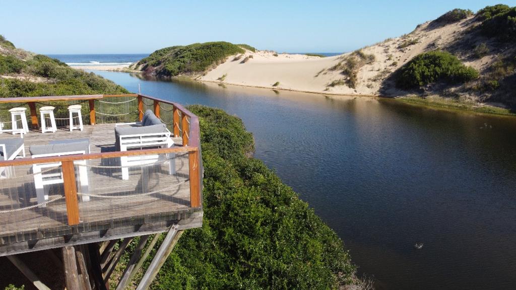 Nestled within a pristine Eco-Estate and Nature Reserve on the sought-after Garden Route, this enchanting river house has graced the banks of the BLIND RIVER estuary for over a hundred years. Offering a secluded sanctuary far from the bustle of city life, this property provides absolute privacy, security, and breathtaking views where the river meets the sea. With white sandy beaches and rolling dunes at your doorstep, this retreat is your ideal escape for relaxation and outdoor adventure.