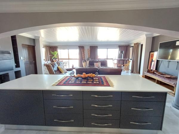 Renovations have enhanced the property''s appeal, including the enclosure of part of the left side''s stoep, the addition of a roof connecting the flat and shed, and retiling for a modern aesthetic. Practical features include three garages, secure covered parking, a tool shed, and a Sun Synk inverter system with 10 solar panels for energy independence. The lush front lawn and sea views from the balconies contribute to the property''s desirability, making it ideal for multi-generational living or as a lucrative rental investment.
