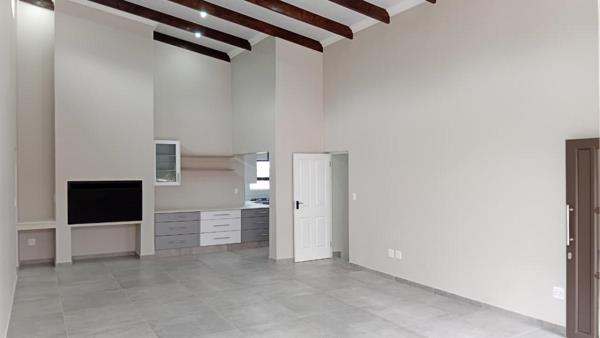 Step into this elegant face-brick home, where a spacious open-plan living area flows effortlessly into a dining space featuring a built-in braai, and a stylish open-plan kitchen complemented by a separate scullery and laundry for added convenience.
