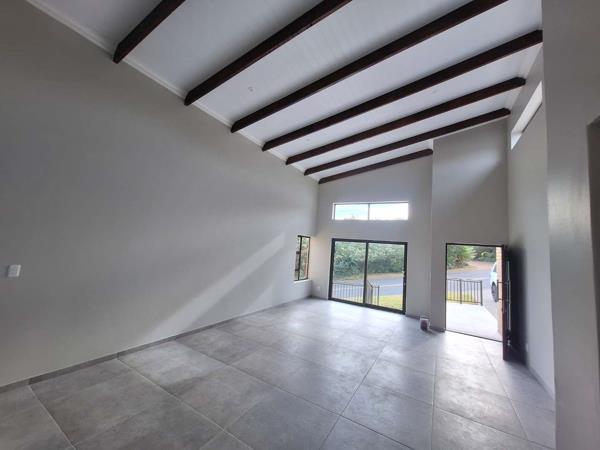 As you step inside, you are greeted by an expansive open-plan living area, characterized by its high ceilings and abundant natural light. The living room flows effortlessly into the dining area, which boasts a built-in braai, ideal for entertaining guests or enjoying cozy family meals. The partially open kitchen is thoughtfully designed with ample cabinetry, a gas hob, and an electric oven, complemented by a convenient scullery/laundry area.