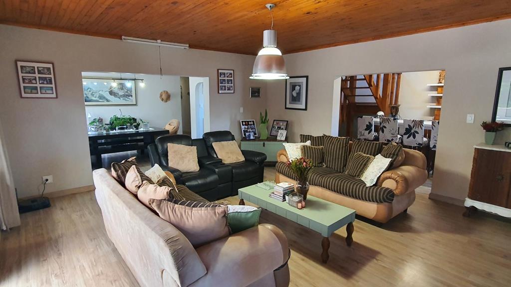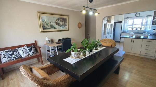 A contemporary open-plan kitchen with ample cupboard space, complemented by a separate scullery and laundry area. The design offers generous ,open dining and living spaces. The living space opens onto a sheltered braai area, ideal for hosting family and friends. This level also includes a guest toilet and three bedrooms. The main bedroom features an en-suite bathroom, while the other two bedrooms share a full bathroom. Up with the stairs to the upper level you''ll find a versatile room that can be used as a bedroom, studio or study. It opens onto a patio that offers beautiful views over the ocean and Dana Bay.