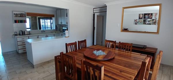 The heart of the home features an inviting family room, complete with a built-in braai, perfect for enjoying cosy evenings with loved ones or hosting summer gatherings while taking in the stunning views. With elegant blinds and secure trellis-doors, this home combines aesthetics with peace of mind.