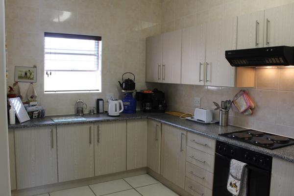 This low-maintenance face-brick residence is situated on a generous 770 sqm stand and spans 197 sqm. It offers three bedrooms, all with built-in cupboards and blinds, as well as an open-plan kitchen, dining, and living area. The kitchen also has a scullery and laundry area, equipped with connections for a washing machine, dishwasher, and dryer. Enjoy entertaining in the separate braai area, complete with a deck and stunning sea views. The property also boasts an enclosed garden, automatic double garage, and secure gate.