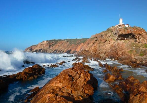 This bustling Garden Route town is a hot holiday spot and one of the ports of South Africa. It is set on the sun-washed slopes of Cape St Blaize, overlooking the expansive bay, and against the blue-black backdrop of the Outeniqua Mountains.