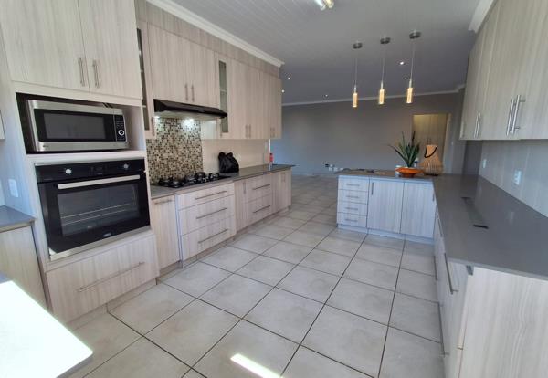 Extra large living area with stainless steel built-in braai & sliding doors to enclosed balcony