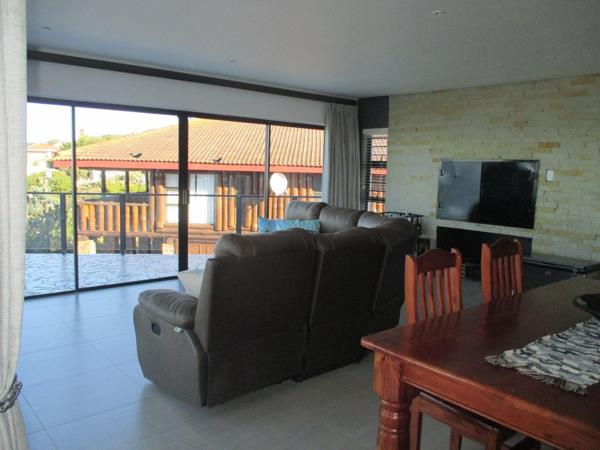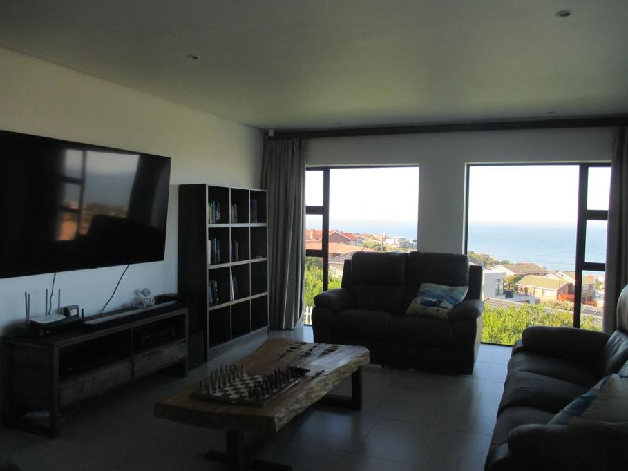 When entering the glass swivel front door, you immediately sea the ocean through all the windows and glass folding doors. Dining room with indoor braai/fire place and a large lounge. The extra spacious balcony gives a 180-degree sea view up to Fransmanshoek and Pinnacle Point to the left.