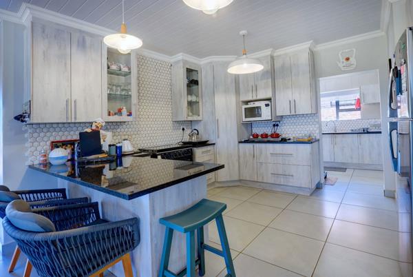 The home flows effortlessly from the lounge, dining room into the modern kitchen. The scullery and laundry is separate from the kitchen. Moving deeper into the house you will find 3 spacious bedrooms and 2 bathrooms with the master bedroom having an en-suite bathroom . The bathrooms were thoughtfully designed with health care considerations in mind.