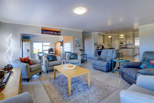 Spotless and comfortable home !! Back on the market. Entering this 3 bedroom house you will be invited by a big open plan living, dining and kitchen area that flows into an entertaining area. This area is any master braaiers dream. There is more than enough prep space as well as a built in braai and glass sliding door that opens onto a wooden deck to enjoy either morning coffee or late afternoon sea views.