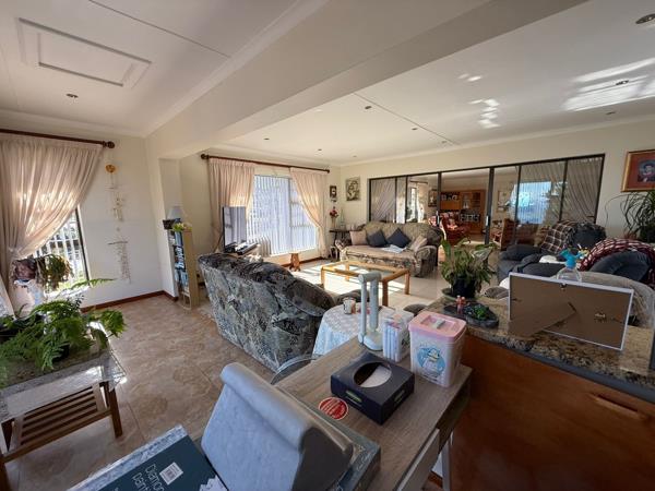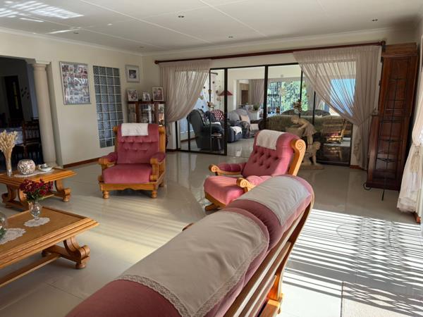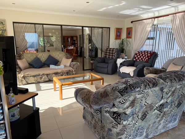 - Extra-large open-plan lounge, dining room, and TV room/entertainment room with built-in braai