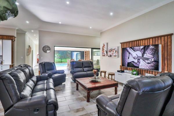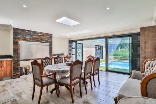Inviting Open Plan TV Room and Dining room that seamlessly combines dining with an indoor Braai area,