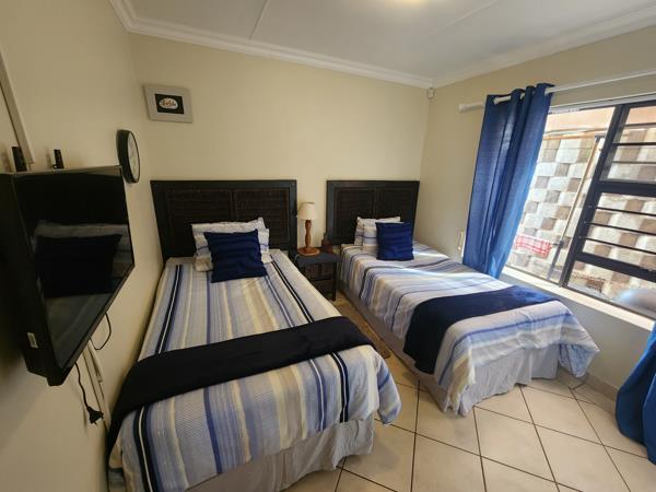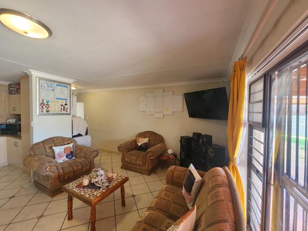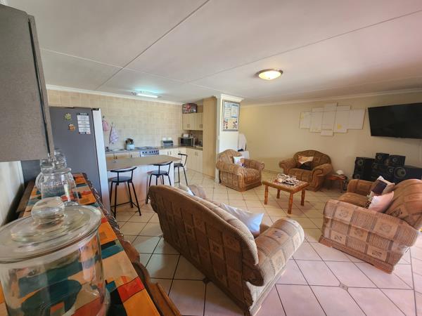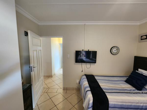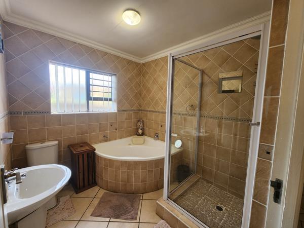 The home features three spacious bedrooms, ensuring ample accommodation for family and guests. The main bedroom is equipped with an en suite bathroom, including a shower, toilet, and basin, offering privacy and convenience. Sliding door lead out from the bedroom to the garden, and also bring in ample light. The full guest bathroom is thoughtfully designed with a bath, shower, toilet, and basin to cater to the needs of the household. The living spaces are well-proportioned, with a cosy living room and dining area that provide the perfect setting for relaxation or entertaining. The kitchen is both practical and inviting, boasting plenty of cupboard space and room for a dishwasher, making daily tasks effortless.