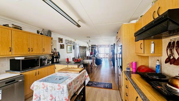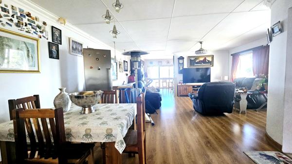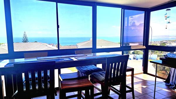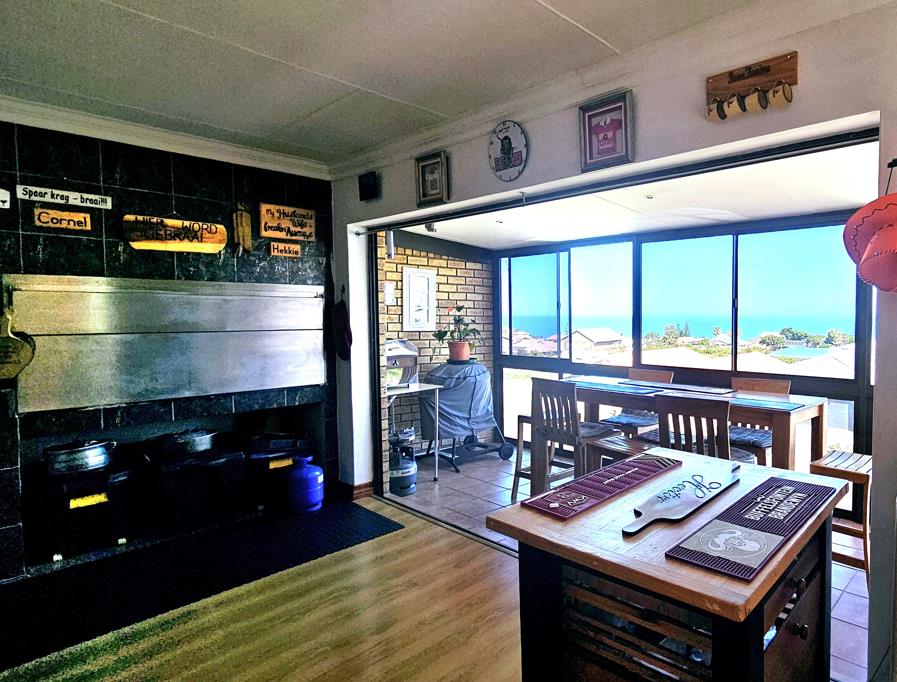 Upstairs, the main bedroomlarge enough for a king-size bedfeatures a luxurious en-suite bathroom that ensures privacy and comfort. A modern open-plan kitchen flows effortlessly into the dining and living areas, which continue into the braai room and enclosed patioall positioned to take full advantage of the panoramic bay views. A guest toilet adds convenience to the upper level.