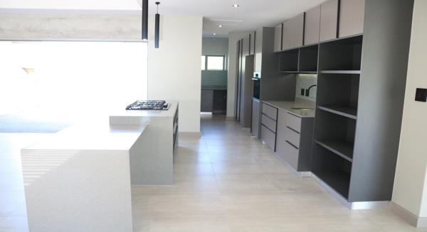 Welcome to this stunning, modern home featuring three spacious bedrooms and three luxurious bathrooms, each designed with comfort and style in mind. As you step into the house, you are greeted by a large living area that seamlessly flows into an open-plan kitchen, complete with a separate scullery for added convenience. This thoughtfully designed space is perfect for both everyday living and entertaining.