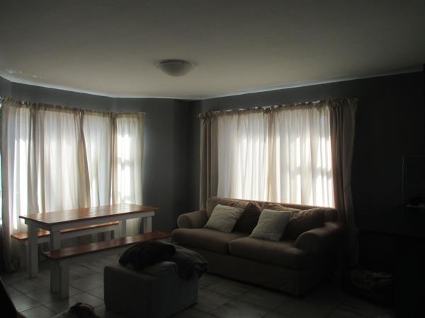 The current people uses the garage as an office which is an excellent idea for people working from home. The garage door leads into the house. You enter the front door and the is a open lounge and dining room with a big beautiful kitchen. A quest toilet downstairs. Beautiful tiles throughout the house. easy climbing steps to the upper part with a bathroom. Kiddies room with large windows and built in cupboards. The main bedroom is large , also with built in cupboards and ample space.