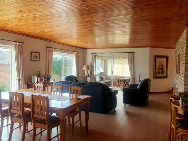 Low maintenance face brick home in prime condition. This single storey home features a spacious open plan living, dining and kitchen area made snug with warm wooden ceilings, a braai room and 3 bedrooms. The main bedroom has a full en suite, while the other 2 bedrooms share a bathroom with bath and basin plus a separate toilet with basin, which is also convenient for guests.