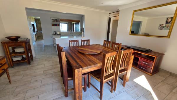 This lovely house is awaiting a new owner to enjoy ease of living while admiring the beautiful sea views. Situated in a popular street in the nature conservation town of Dana Bay where you can still experience wildlife wandering in your garden. The house is on one level and offers three bedrooms, two bathrooms, kitchen with scullery and enough space for all your appliances, dining room adjacent to the kitchen, lounge with a built-in braai, enclosed sonstoep with beautiful sea views and the double garage with built-in cupboards and a sliding door has direct access into the house for your safety and convenience. The large yard is totally fenced for safe keeping of your pets and the wendy house is perfect for storage or a workroom whilst the boma and entertainment area will be ideal to enjoy a braai with your friends and family. This house is awaiting a new owner and is ready to welcome you to enjoy what it has to offer. For more information or appointment to view you are welcome to contact me.