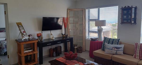 Lounge with sliding doors leading to an enclosed braai room with stacking doors.